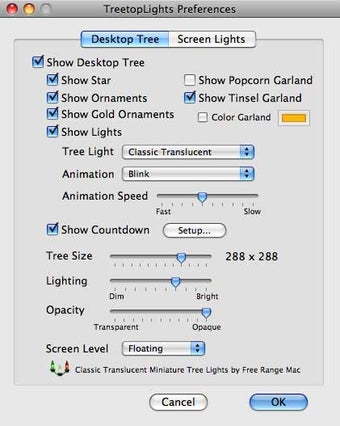 TreetopLights versetzt den Mac in weihnachtliche Stimmung. Die Freeware präsentiert auf dem Monitor einen bunten Christbaum und schmückt den Desktop mit einer festlichen Weihnachtsbeleuchtung.